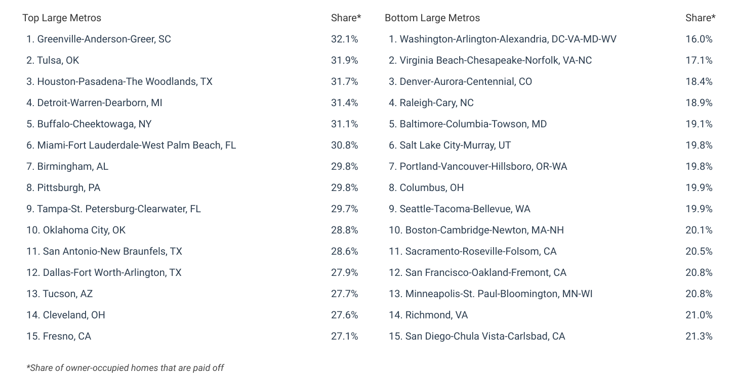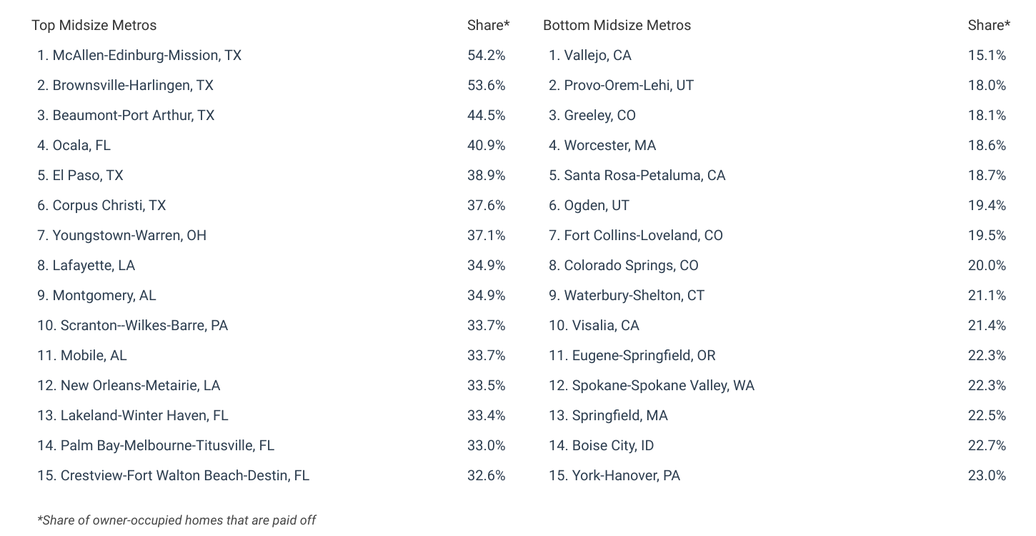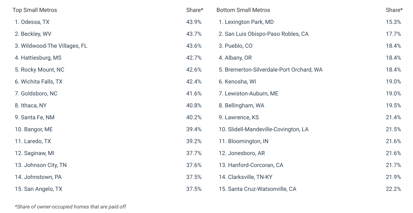 Cities With the Most Residents Who Have Paid off Their Homes